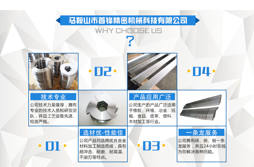 馬鞍山市首鋒精密機械科技有限公司位于中國之鄉(xiāng)馬鞍山市博望區(qū)博望鎮(zhèn)紅旗街。地理環(huán)境優(yōu)越,交通便利。工業(yè)區(qū)內(nèi)314省道貫穿,連接江、浙、滬、皖,距南京祿口國際機場30公里。 我們專業(yè)研發(fā)銷售各種機械圓刀、長刀、分切刀片、沖剪刀、剪板機刀片、等沖壓剪切刀具機械配件。產(chǎn)品廣泛應用于冶金、造紙、紙品加工、印刷、橡膠工業(yè)、塑料、木材加工、食品、金屬加工、皮革、無紡布、不干膠、膠帶、板材加工、軋鋼、紡織、五金機械等行業(yè)。 馬鞍山市首鋒精密機械科技有限公司,機械刀片加工歷史悠久,具有豐富的切削刀具加工經(jīng)驗,擁有多條國內(nèi)先進的研發(fā)設備和一套科學加工工藝,在保證了產(chǎn)品質(zhì)量和品質(zhì)的同時,使產(chǎn)品生產(chǎn)做到了程序化和規(guī)?;?。 我們本著“誠信、求精、高效”的精神,期待著與國內(nèi)外各界開展更為廣泛的交流與合作! 更多>